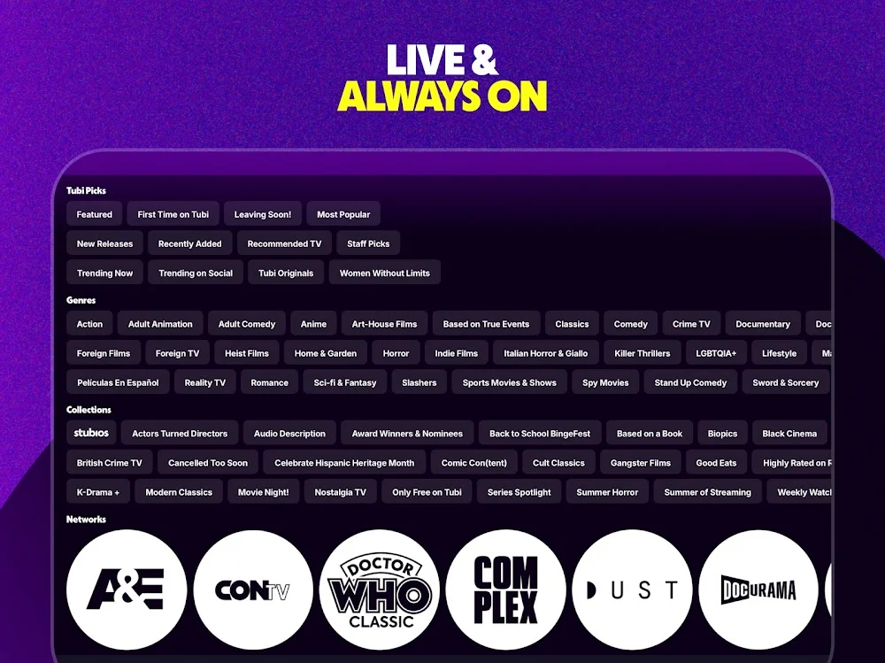 - Multi-Platform Support: Tubi is available on multiple devices including smartphones, tablets, computers, smart TVs, and even gaming consoles. This ensures you can watch content wherever you are.