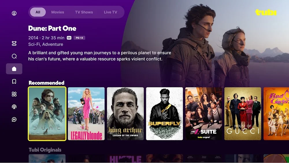 Tubi’s interface is clean and user-friendly, focusing on easy navigation. The home screen features movies, TV shows, and personalized recommendations. Its simple layout includes categories like “Featured,” “Movies,” “TV Shows,” and “Trending.” A standout search function lets users quickly find titles, actors, or genres. The minimal design and intuitive controls make for a seamless viewing experience.